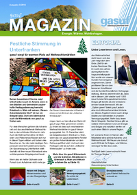 Ausgabe 3/2015 Energie. Wärme. Wohlbehagen. EDITORIAL Festliche Stimmung in Unterfranken Liebe Leserinnen und Leser, gasuf sorgt für warmen Platz auf Weihnachtsmärkten Seinen…