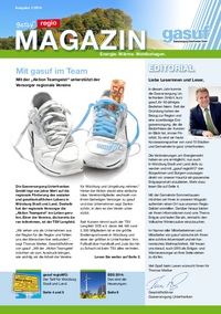 Ausgabe 1/2014 regio Energie. Wärme. Wohlbehagen. EDITORIAL Mit gasuf im Team Mit der „Aktion Teamgeist“ unterstützt der Versorger regionale Vereine Die Gasversorgung Unterfranken…