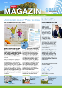 Ausgabe 1/2015 regio Energie. Wärme. Wohlbehagen. Jetzt schon an den Winter denken EDITORIAL Ein Vertragswechsel kann sich lohnen Liebe Leserinnen und Leser, Wichtige Angaben zur…