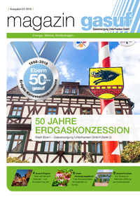 / Ausgabe 03-2018 / magazin Energie. Wärme. Wohlbehagen. 6 8 -2 018 19 Ebern on ne m as -K mu Erdg Jahre zessions ko 50 JAHRE ERDGASKONZESSION Stadt Ebern – Gasversorgung…