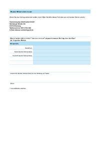 Muster-Widerrufsformular (Wenn Sie den Vertrag widerrufen wollen, dann füllen Sie bitte dieses Formular aus und senden Sie es zurück.) Gasversorgung Unterfranken GmbH Nürnberger Straße 125 97076…